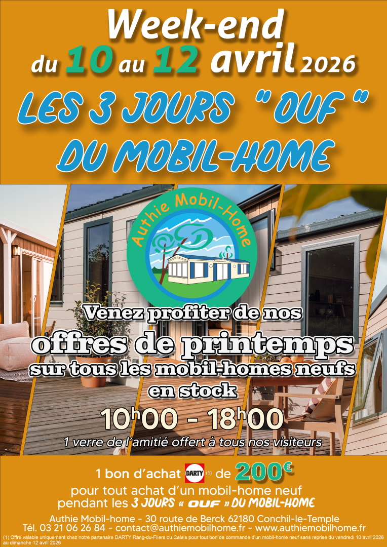 JOURNÉES PORTES-OUVERTES AUTHIE MOBIL-HOME, DU 10 AU 12 AVRIL à Conchil Le Temple (62)