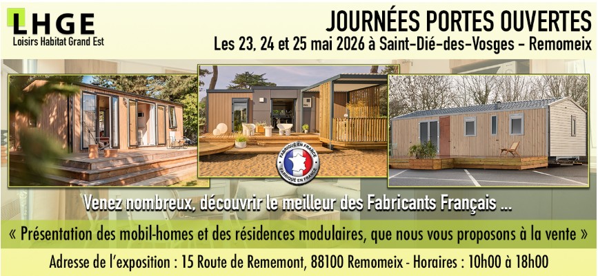 JOURNÉES PORTES-OUVERTES LOISIRS HABITAT GRAND EST, DU 23 AU 25 MAI à Saint Dié - Remomeix (88)